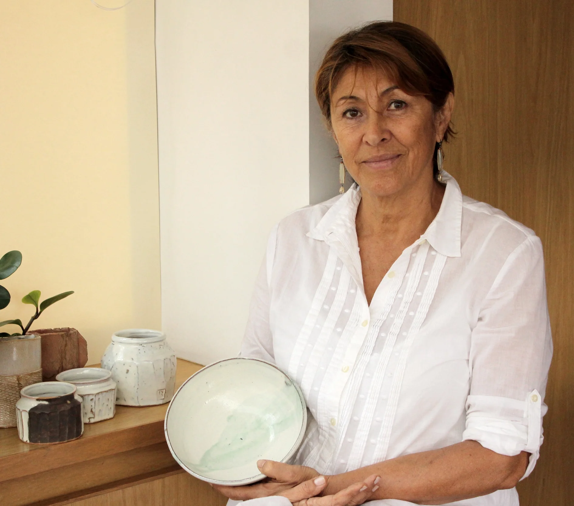 Realizó estudios para el aprendizaje de las diferentes técnicas en placas, rollos, modelado, preparación de engobes, esmaltes y acabados de piezas con Dina Koegler por cuatro años.